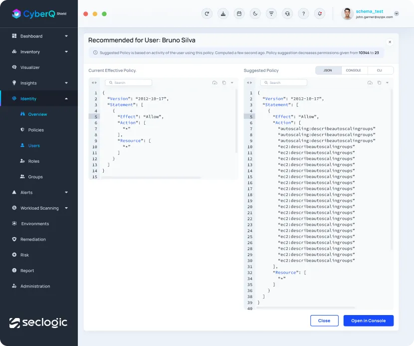CyberQ Shield checks how much access each Identity have to your cloud and automatically generates policy basis what they really need.