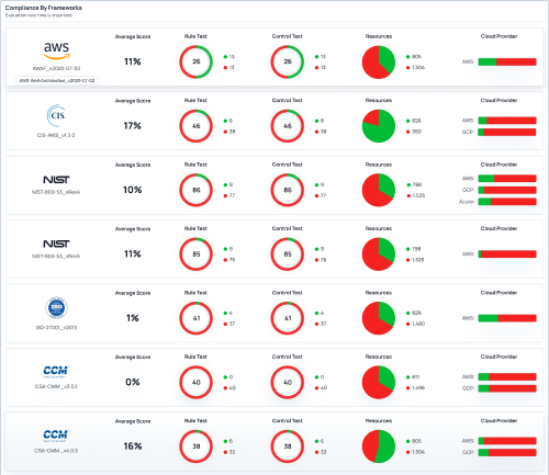 Seclogic conducts a comprehensive assessment of your compliance posture by automatically evaluating it against over 100 industry compliance frameworks, including your personalized frameworks. This solution eliminates the manual effort and complexity associated with achieving compliance in dynamic and multi-cloud environments.