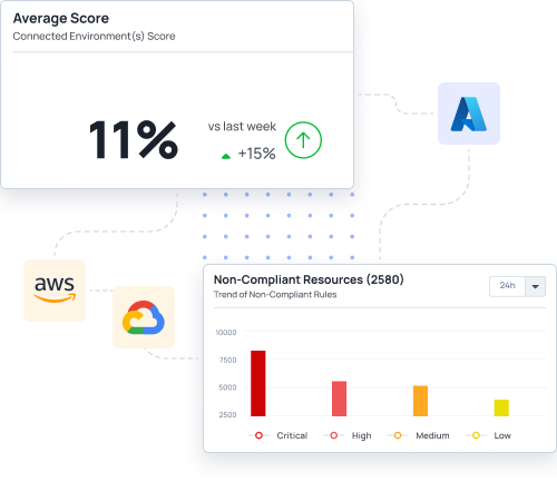 Ensure ongoing automated compliance with industry established regulations and benchmarks, such as PCI, GDPR, HIPAA, and additional relevant standards, as well as tailor-made frameworks.